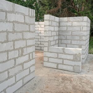 2) Individual blocks are much larger in size than clay bricks. As a result, the structure completion happens faster.